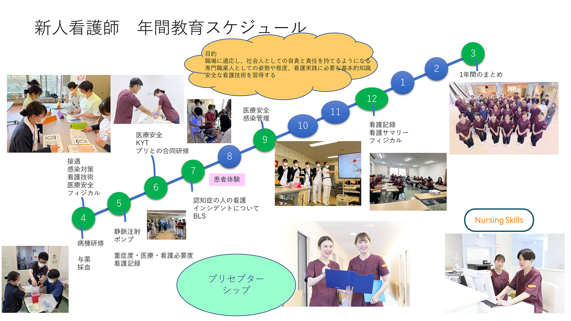 新人看護師だけでなく2年目以降の看護師も、なりたい看護師に向けた教育プログラムを自身で描くことができます。