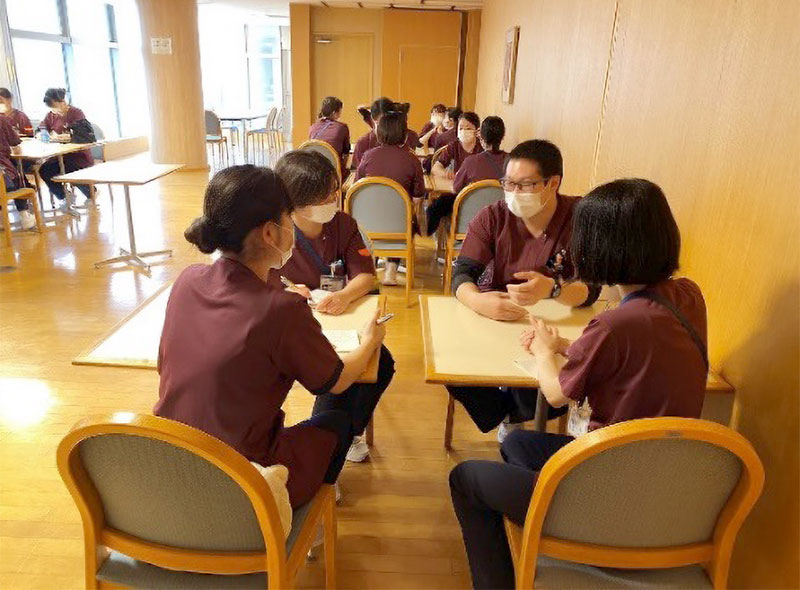 リアリティショックが軽減できるような研修計画を企画しています。プリセプター制度のもと自己学習を行い、病棟全体でサポートできるように支援しています。初期研修が終了した後も定期的に研修があり、段階的に学習できるようなプログラムとなっています。毎月1回の集合研修では、知識技術の習得の他に、新人看護師同士が課題や悩みを共有し、お互いの成長を認め合う場となっています